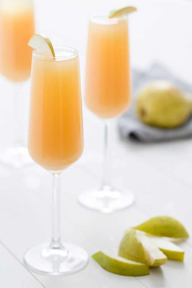 Apples are usually the go-to fruit flavor of the season. Offering a unique autumn twist on the classic late-morning cocktail, the pear mimosa is a marvelous drink to serve at your post-wedding brunch. It’s very simple to make and calls for pear nectar, dry champagne, and pear slices for garnish. Visit Delish for the full recipe.