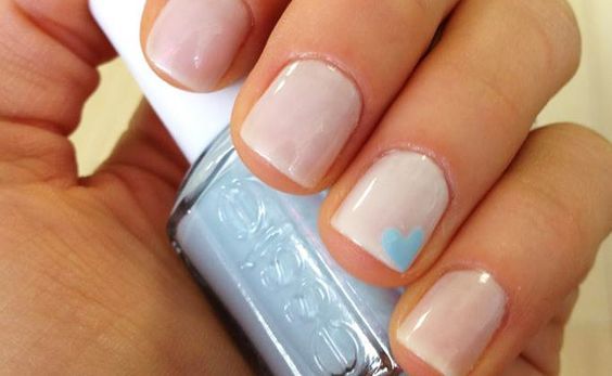 You can’t go wrong with a soft pink nail on the big day. But a mini blue heart takes the bridal manicure next level.