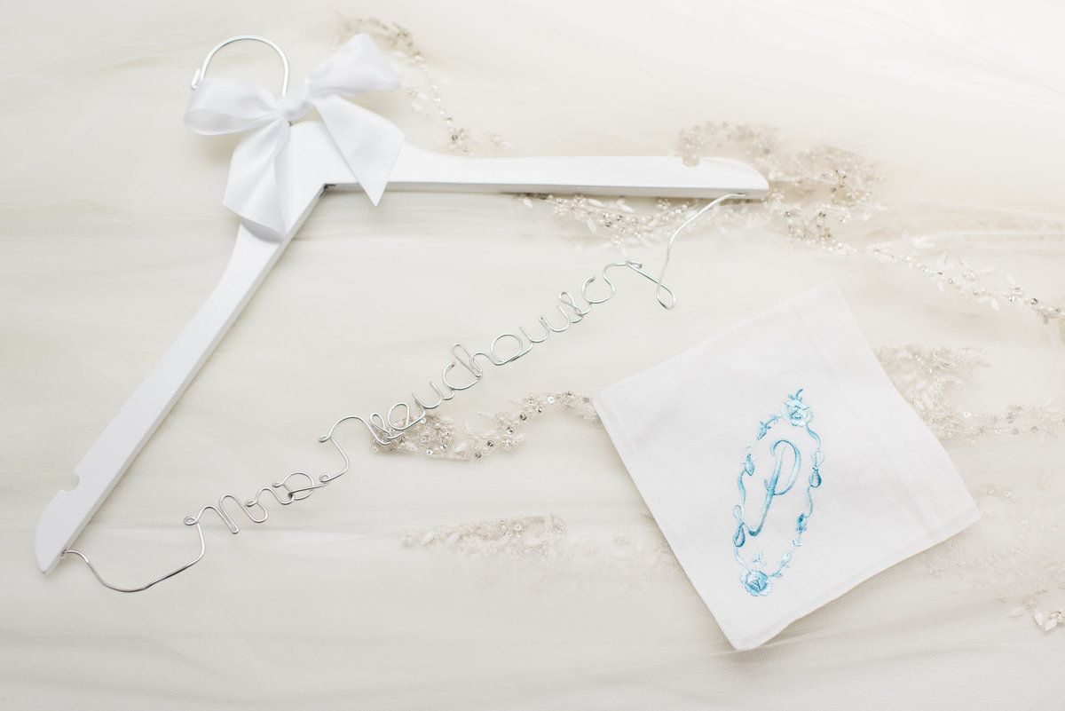 Bride & Blossom bride Paige carried a handkerchief with her initial embroidered in blue.