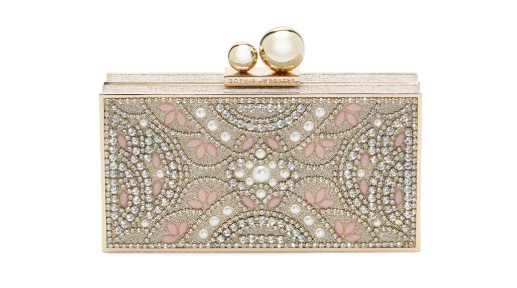 Make your fairy-tale wedding dreams come true with this beautiful clutch by designer Sophia Webster. Showcasing exquisite jewel detail, it brings to mind a princess tiara and would look breathtaking paired with a ball gown wedding dress.