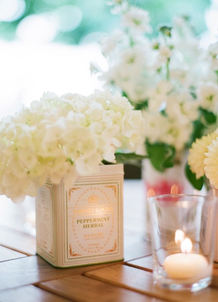- Tea Cans and Hydrangeas – Centerpieces – Jose Villa Photography – Style Me Pretty -via Brit.com
