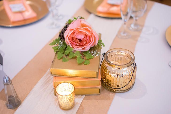 - Vintage Book and Garden Rose Centerpieces – via The Knot.com