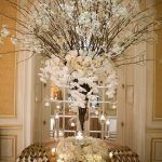 - Amanda & Thomas Wedding – Card Table – High Centerpiece – Cherry Blossom Branches Garden Rose Vendela Rose Hydrangea Phal Orchid – Essex House NYC – Photography by Kelly Guenther