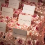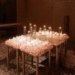 Your guests will never forget when they had to pick up their escort cards from a bed of roses at your Park Hyatt wedding. Compactly arranged on four square tables, the blush-colored blooms are divided by an arrangement of glass cylinder vases with floating candles, adding a unique and stylish touch to the display.
