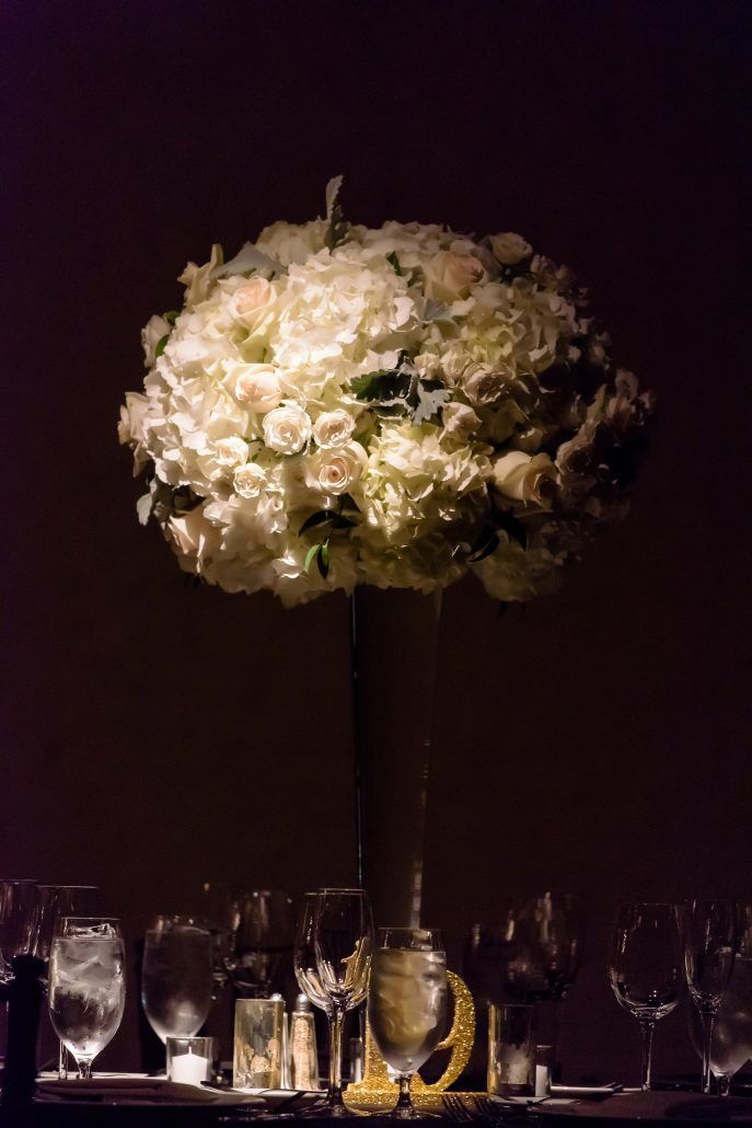 - Low Centerpiece Closeup – Andrea and John – Liberty Warehouse – Popography