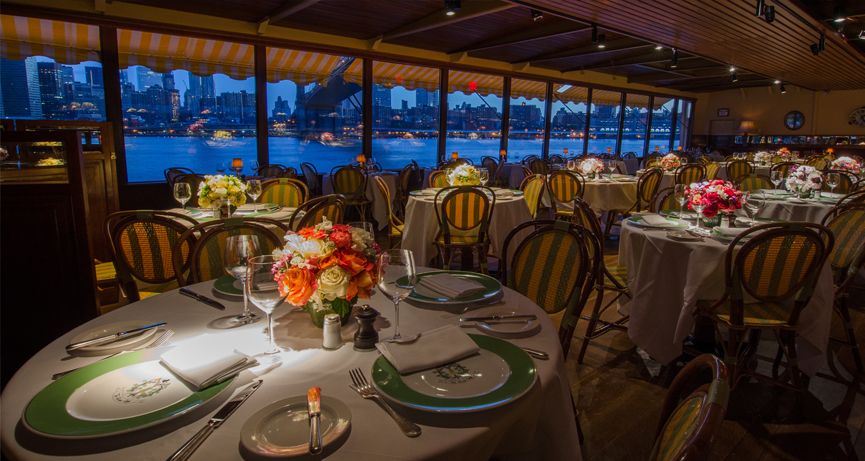 As the most romantic spot on our list, the River Café is nestled waterfront on a former coffee barge in Dumbo right under the Brooklyn Bridge. For the past 40 years, the Michelin star restaurant has been alluring New Yorkers with its luminous atmosphere, which only becomes more dreamy at nightfall when stunning views of Manhattan become crystal clear. Invite friends and family for an unforgettable evening in the Terrace Room, the private event space that has a classic French feel. The River Café accommodates 30 to 100 guests.