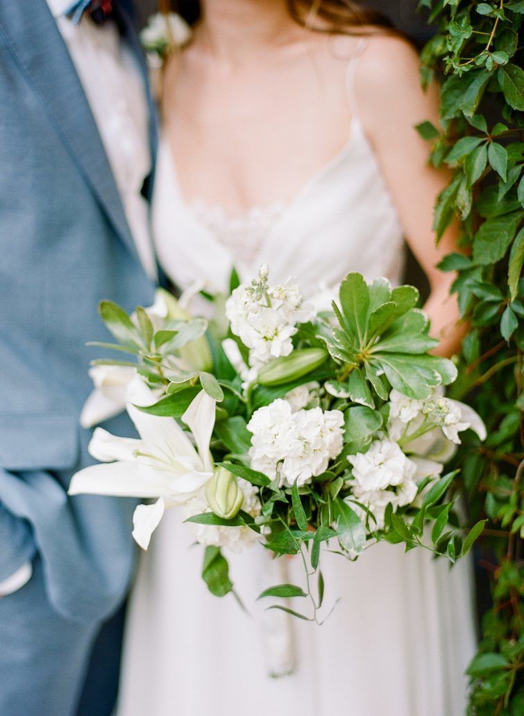 Georgia O’Keeffe put it best when she said, “I found I could say things with color and shapes that I couldn’t say any other way; things I had no words for.” Color is personal, emotional, and transformative. Your floral palette affects the overall look and feel of your wedding in so many ways. Some of our brides want nothing to do with pink flowers while other can’t get enough. Real BB couple Dayna and Matt had fun with coming up with their kaleidoscope-inspired color concept and headed to their local paint store for inspiration. “I would recommend this to any bride,” Dayna says. “We pulled out various paint chips and arranged them into really unique color schemes.” Once you grasp which colors you want and those you don’t, you can start choosing flower recipes. While you should think about wedding colors with wild abandon, we do see a correlation between schemes and season: winter (and summer) tends to be whites with greenery; spring is vibrant with bright purples, pinks, and yellow; summer is softer with blushes, peach, mauves, ivory, and cream; fall is rich with deep jewel tones along with berrry, burgundy, and wine.