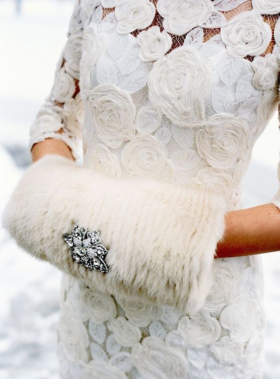 Live out your snow queen fantasy by adding a bridal muff to your wedding outerwear. Extremely popular during the 19th century, the item may seem a little out of place today. But put in the context of a winter wedding and the muff becomes a show-stopping accessory guaranteed to make an impression. The piece can be worn alone or embellished with a bejeweled brooch.