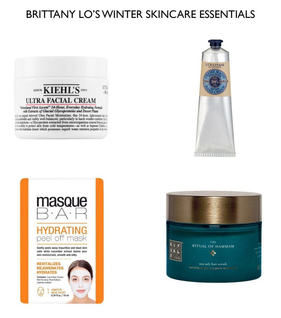 Kiehl’s Ultra Facial Cream – L’Occitane Hand Cream – Masque Bar Peel Off Hydrating Mask – The Ritual of Hammam Sea Salt Hot Scrub