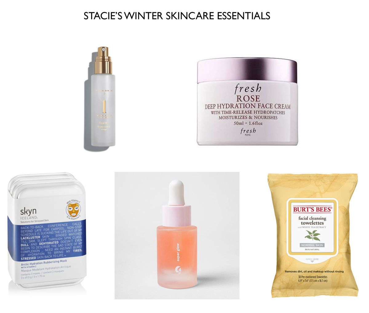 My favorite moisturizer to use during the winter months is Rose Deep Hydration Face Cream from Fresh. This cream hydrates and comforts the skin with natural rose flower oils. One of my favorite masks to use is the Arctic Hydration Mask from Skyn Icleland. This mask locks in ultimate hydration and replenishes the skin with vitamin C. A favorite serum that I love to use all year long is Super Glow vitamin C serum from Glossier. This serum brightens the skin and creates even toned skin for even those harsh winter months. 100 % Percent organic and cruelty free.