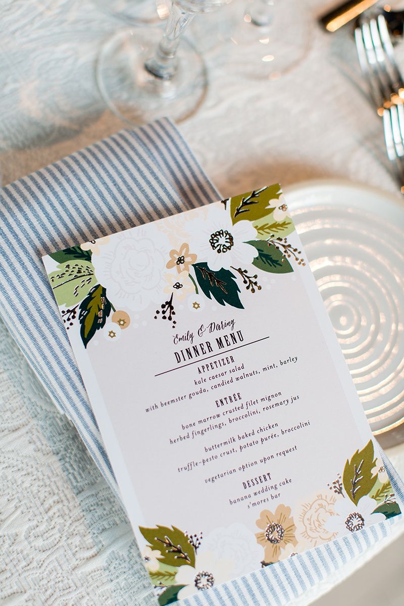 Emily & Daring Wedding – Dinner Menu – Battello – Photography by Casey Fatchett