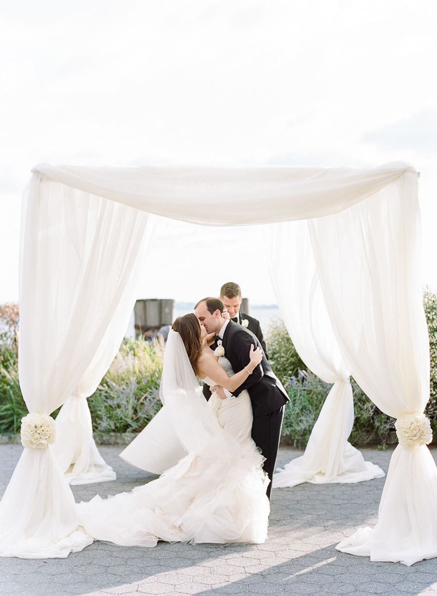 Jessica & Brian Wedding – Bride and Groom Under Chuppah – Battery Gardens NYC – by Rebecca Yale – 048