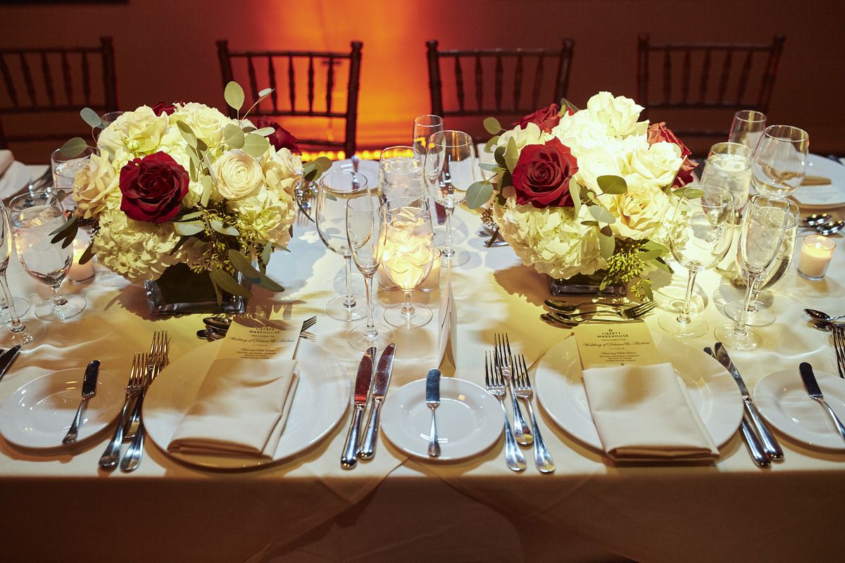 Low Centerpieces / Delaine & Andrew / Liberty Warehouse / Le Image Photography