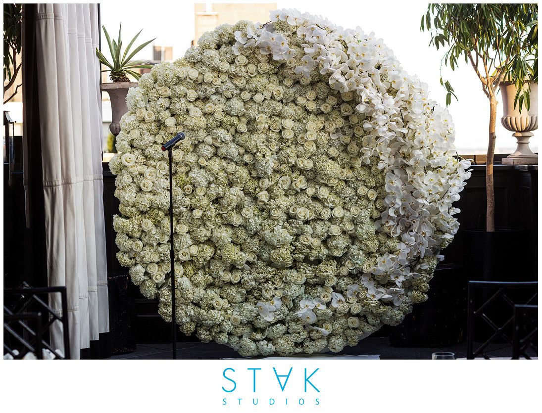Mairin and Seo Wedding – Hydrangea Tibet Rose Phal Orchid Round Flower Wall – Gramercy Park Hotel – Photography by Stak Studios