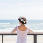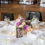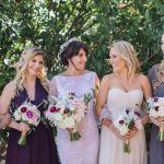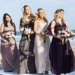 The theme of the day was beach chic – a kind of low-key elegance that perfectly matched this couple’s playful demeanor. The bride wore a gorgeous long-sleeved A-line lace wedding gown with a simple bateau neckline and a beautiful brush train. Her bridesmaids coordinated with her blush, mauve and burgundy palette wearing different shades of purples and pinks in a variety of silhouettes, reinforcing the casual chic theme of the day.