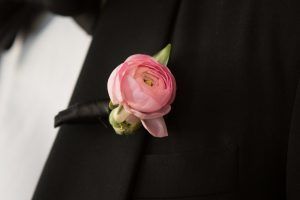 Sophia & Sam Wedding – Boutonniere Pink Ranunculus – Tribeca 360 NYC – by Shira Weinberger