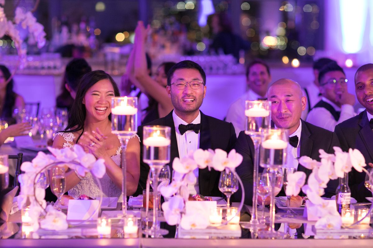 Sophia & Sam Wedding – Bride and Groom at Head Table – Tribeca 360 NYC – by Shira Weinberger_W2A1403