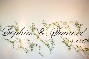 Sophia & Sam Wedding – Bride and Groom Sign with Greenery – Tribeca 360 NYC – by Shira Weinberger