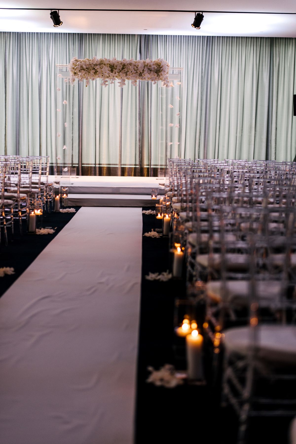 Stefanie & Jon Wedding – Lucite Chuppah with Hydrangea and Phalaenopsis Orchid – riverpark NYC – by Trent Bailey – 0412