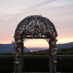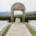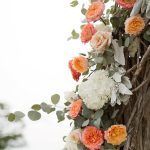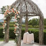 The ceremony took place beneath a marvelous wisteria archway with pops of peach, white, blush, and cream cascading down the front, adorned with lush woven greenery.  We love how these fresh blooms popped in the day and softened with the beautiful sunset come evening.