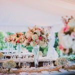 Pink can be tricky – if you push too much pink against a poorly matched venue or combine too many tones and textures, things can quickly go from charming to childish. “Our goal is to make sure the wedding doesn’t look like Barbie’s birthday party so we’re super careful in what we use it in, how much of it we use and the shades we select when we design the wedding.”