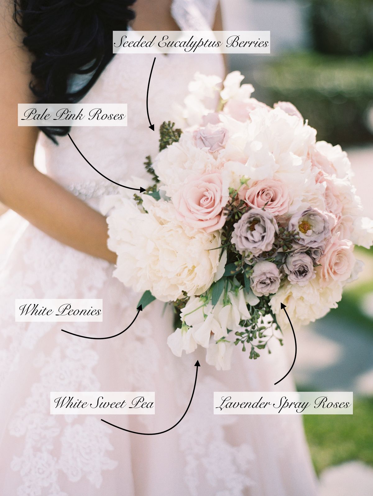 This angelic pink and lavender bouquet, accented with sweet pea and seeded eucalyptus berries, is straight out of a fairytale.