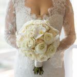 Ina and Kevin’s traditional church ceremony at St. Ignatius Loyola Church was followed by a gorgeous reception at the Park Hyatt. She walked down the aisle in a beautiful long-sleeved Alon Livne gown holding a dimensional and textured white bouquet featuring white garden roses, cream vendela roses, white spray roses, white ranunculus and white Phalaenopsis Orchids. The Chinese-Korean couple honored their heritage with a traditional wedding tea ceremony in which Ina donned a gorgeous red Lanvin dress.
